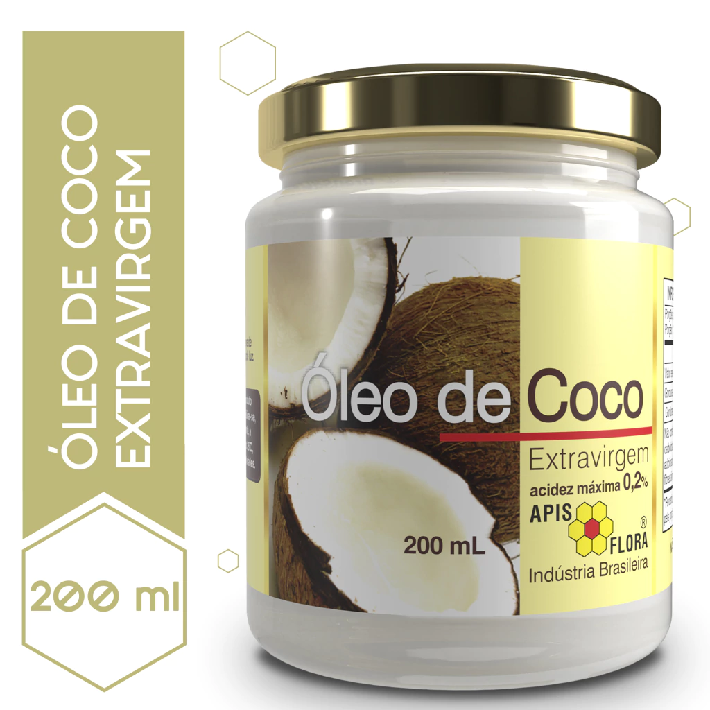 DESCRIÇÃO Do Produto O Óleo de Coco Extravirgem da Apis Flora é extraído por compressão à frio da polpa da fruta fresca e sem processos de refinamento. Os cuidados em todas as etapas do processo de produção, resultam em um produto livre de contaminantes, com acidez máxima de 0,2% e 0% de gorduras trans. O óleo de coco é um produto 100% natural e pode solidificar-se, completa ou parcialmente, a temperaturas inferiores a 25°C, não alterando suas propriedades. MODO DE USO: Pode ser consumido puro ou em substituição ao óleo de soja (ou outros) utilizado no tempero de alimentos, como saladas. LISTA DE Ingredientes Óleo de coco extravirgem. INFORMAÇÕES IMPORTANTES Acidez máxima de 0,2% Não contém glúten Manter em local seco, longe de fonte de calor e ao abrigo de luz O Coco O coco (Cocos nucifera L.) é o fruto da palmeira do coqueiro e, apesar de não ser uma espécie brasileira, está bem adaptada às condições climáticas do país, o que justifica a gama de produtos alimentícios obtidos a partir da palmeira. Tradicionalmente utilizado em países da Ásia-Pacífico, o óleo de coco foi (re)introduzido de forma relativamente recente no Brasil, ao final dos anos 2000. O coco é uma importante fonte natural de gorduras saturadas, sendo dos óleos vegetais com maior teor de ácidos graxos saturados (mais de 90% de sua composição), principalmente, o ácido láurico, que possui importante capacidade de elevar o LDL-c e o HDL-c.