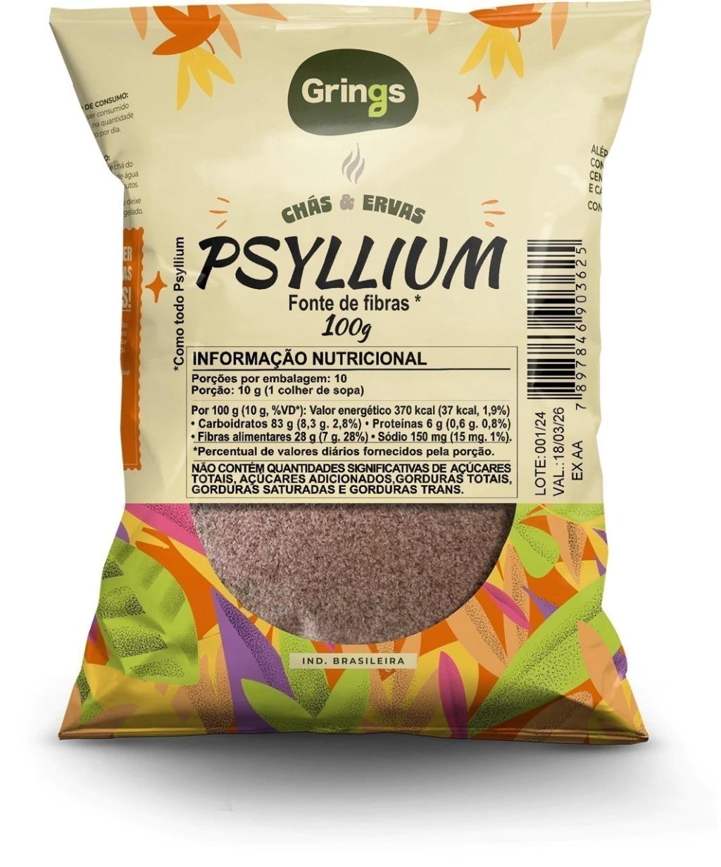 O Psyllium 60% é uma excelente fonte de fibras alimentares, extraído da planta *Plantago ovatae*. Com 28g de fibras a cada 100g, ele é ideal para auxiliar no bom funcionamento do organismo, promovendo saciedade e equilíbrio na alimentação. Este produto pode ser consumido diariamente em receitas, misturado em bebidas ou sobre frutas e iogurtes, proporcionando uma ingestão prática de fibras.